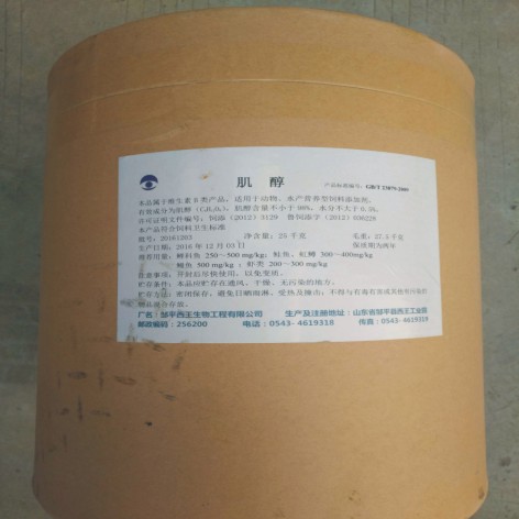 肌醇营养添加剂;肌醇是一种关系到人、动物、微生物生长所必需的物质,具有与维生素B1、生物素等相类似的作用。目前,肌醇已被列入食品营养强化剂,已在多种食品中广泛使用,市场上流行的全营养素、维生素功能饮料等均添加了肌醇。肌醇可用作维生素类YAO及降XUEZHIYAO。促进GAN及其它组织中的ZHIFANG代谢。用于ZHIFANG肝、高XUEZHI症的辅助ZHI疗。可以制成肌醇片,烟酸肌醇酯、脉通等YAO物。肌醇还用于各种菌种的培养,促进酵母的生长等。肌醇作为鱼、对虾的饲料添加剂正被使用。