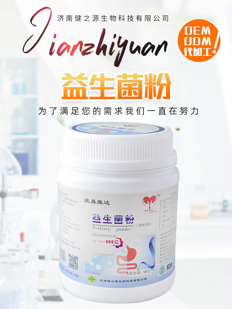 济南健之源,专注益生菌粉固体饮料的OEM贴牌代加工,可根据客户需求定制、儿童、成年人、老人配方,如有需要请及时与我们联系。
