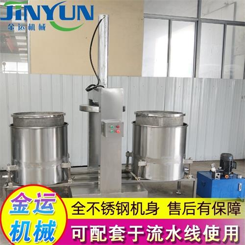 压榨机主要由机架、油缸、压力油泵、压盖、电机、油箱、桶组合而成。底座、压盖及料桶采用304不锈钢及不锈板材包裹,符合国家食品卫生要求,具有噪音小,效率高,维护方便等特点。