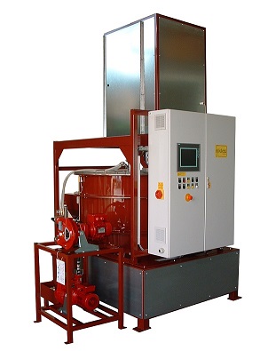 ●选择一定数量的种子投放在混合室内,种子在旋转搅拌锥的密集椭圆运动中旋转,被向上输送到汽缸壁,然后由弯曲的挡板引导向下进入中心。因此,在搅拌锥的中心位置,有一个细的、带着白色的种子抛物面,是液体的精细喷雾装置。