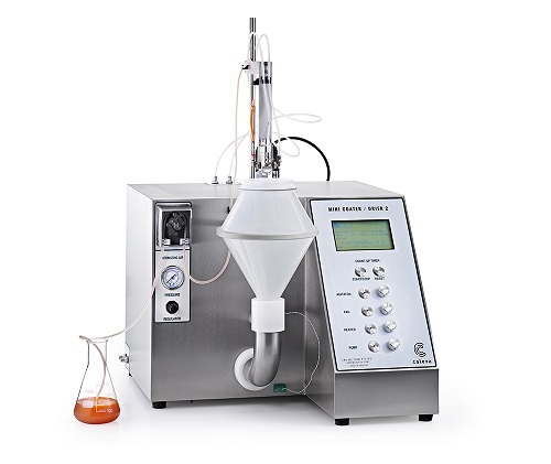 蠕动泵控制液体的流速在5-50ml/hr之间;利用压缩空气将液体雾化并喷涂到产品上;在使用最少的包衣液情况下,就能快速而有效对少量样品进行包衣处理;运行参数可以手动控制和调节。