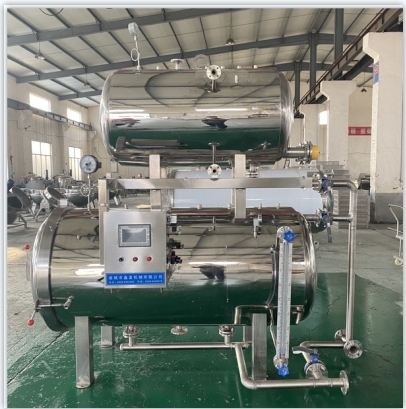 2、根据产品灌装温度要求,由热水罐向杀菌釜内注入设定温度的杀菌工艺水,到达工艺设定的液位;