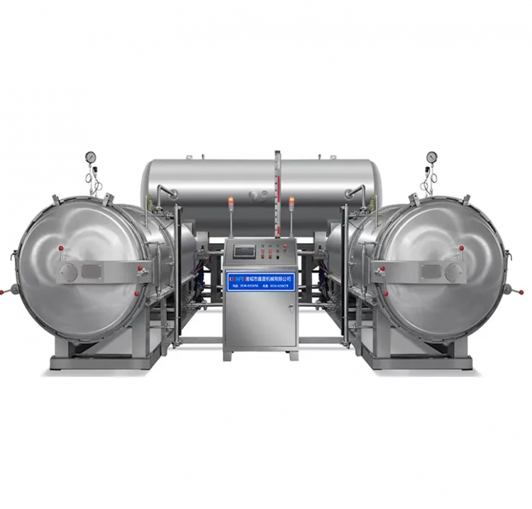 两锅一罐水浴式杀菌釜是一种专为高效、节能灭菌设计的食品加工设备,通过共享一个热水罐连接两个杀菌锅,实现高温短时间灭菌。该设备采用水浴循环加热技术,预先将热水罐内的水加热至灭菌温度,缩短升温时间,并通过循环系统确保热分布均一、无死角。