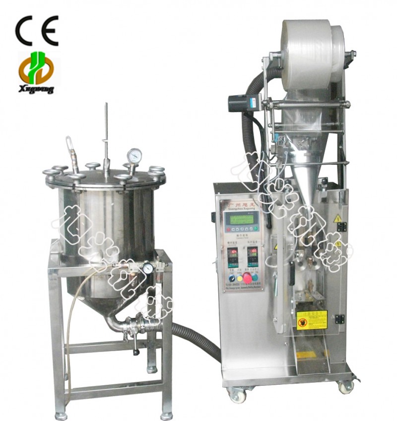 1.液体、粘体自动包装机可以在包装过程中自动完成计量、制袋、充填、封口、切断、计数、热压批号等全部工作中文显示屏控制系统。
