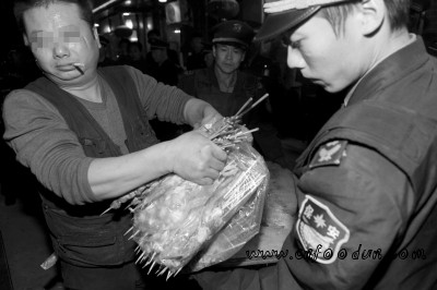 在大众点评网上被评为“三星级”的烧烤摊,实际上是一个非法路边摊。前天,丰台东铁营城管队将该烧烤摊取缔。