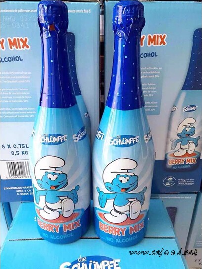 最新推出的“蓝精灵”主题无醇汽泡包装图案源自欧洲著名设计师,瓶身上炫目灵动的“蓝精灵”卡通形象栩栩如生呈现在人们面前,天蓝色强大的视觉跳跃感使产品本身完全有能力在市场上众多同类产品中脱颖而出。产品成分特别采用苹果汁,接骨木梅汁,草莓汁,苹果汁及水蜜桃汁混合的独特口味,相对于传统单一口味的汽泡产品也是一次绝对的创新和突破,尤其受到孩子们和女性朋友的青睐。据熙蔓世家(ZGM)亚太区首席代表约翰·欧勃嵩(Johann Oberson)先生表示,“蓝精灵”无醇汽泡产品在中国市场一经推出便受到强烈追捧,产品供不应求。不管是在炎炎夏日还是阳光温暖的秋天,无论是生日派对、聚会狂欢还是主题商业活动,熙蔓世家(ZGM)带来的“蓝精灵”主题无醇汽泡一定会为现场增色不少,是追求快乐幸福的人们的最佳选择。此外,包括公司不久前推出的Hello Kitty凯蒂猫主题和“星球大战”主题,都是在市场上新的尝试,熙蔓世家(ZGM)未来将针对客人需求,始终致力于将最多元化、最具吸引力的优质产品推向市场。