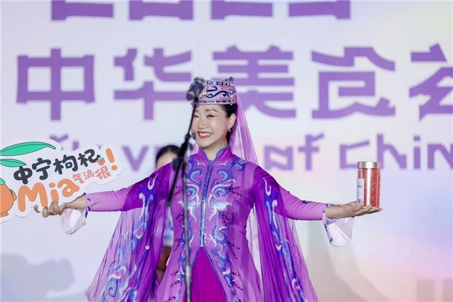 活动现场,有着500多年历史的非遗舞蹈“黄羊钱鞭”、被誉为“大西北之魂”的民歌“花儿”以及非遗美食蒿子面等精彩内容轮番上演,原创歌曲《枸杞原浆 福寿安康》更是将现场气氛推向高潮,充分展现中宁作为“文化杞乡”的软实力。