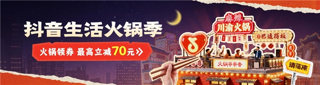 除了创作者专属激励,还有超多“嗨吃”惊喜等你解锁。本次「抖音生活火锅季」携手代言人大张伟、品牌商家及一众达人带来多重福利,让大家畅吃更尽兴。活动期间,上抖音搜索「火锅团购」,一系列福利玩法让你的火锅局“倍儿爽”!不仅搜索后有机会触发明星互动彩蛋赢签名照,还能在线下与大张伟“合拍”互动,边吃边玩超开心!实现“火锅自由”当然也离不开实实在在的“补贴”:主会场火锅券包每天10点限量开抢,最高可领70元,用券嗨吃快乐翻倍!还有超多火锅大牌商家带来的超值尖货等着你,这波吃爽还不伤钱包的机会可千万别放过!
