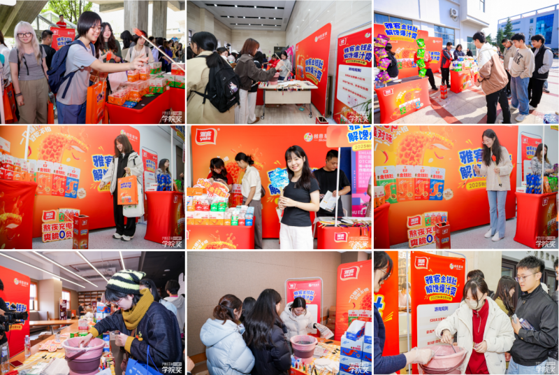 品牌理念不止于课堂,更延伸至场外的互动体验之中。精心设计的雅客品牌互动专区一经亮相便成为校园焦点,通过沉浸式场景互动与真实品鉴种草,将品牌态度生动转化为可感知的年轻化体验场。