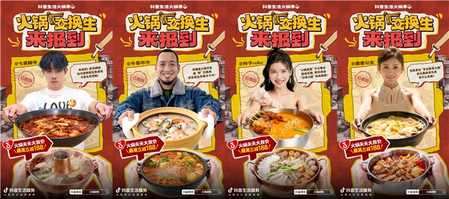目前,「抖音生活火锅季」正在沸腾进行中,快来和全国各地的“火锅交换生”们一起热闹开吃,用火锅作为社交局的“引线”,点燃冬日生活的趣味。现在上抖音搜索「火锅团购」,不仅有火锅天天大放价,最高立减188的优惠券,还有“9.9元吃大牌火锅”等多重福利等你来抢!今年别再“猫冬”,跟着抖音生活服务一起解锁天南海北的美味火锅,为冬日注入满满活力,更多惊喜活动陆续揭晓,敬请期待!