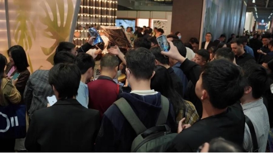 关键进阶在于CMF的深度表达。展会现场,带着山川纹理的金属板原料源自德国原石,经工艺优化后反而比天然石材更具生命力。这让材料从标准品变为设计思想的精准媒介。