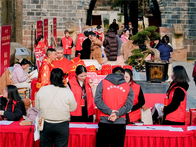 宴席间,水井坊工作人员给每位街坊送上红围巾和伴手礼,红色的围巾映着大家的笑脸,成了冬夜里最暖的风景。40多名水井坊“小酒花”志愿者更是最动人的风景线,他们中有不少本身就是西华街道的居民,主动化身服务者,在各个岗位上各司其职、忙碌穿梭,串联起企业与邻里的温情纽带,让这场家宴更添温度。