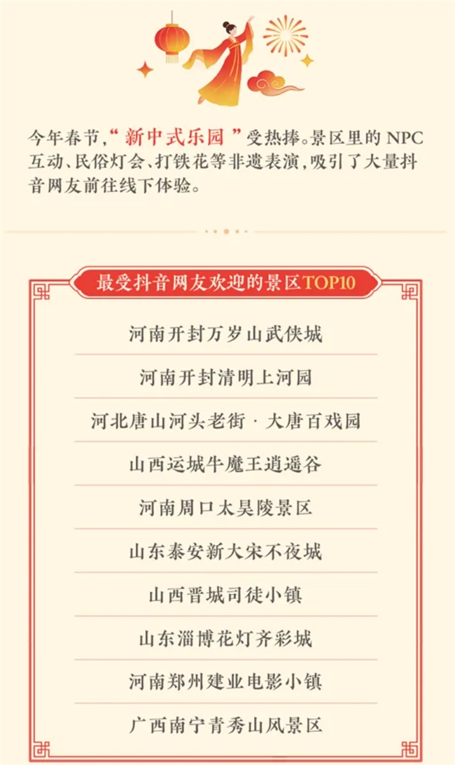 带NPC互动、民俗灯会、打铁花表演的新中式景区,直接霸榜春节最受欢迎景区TOP10。