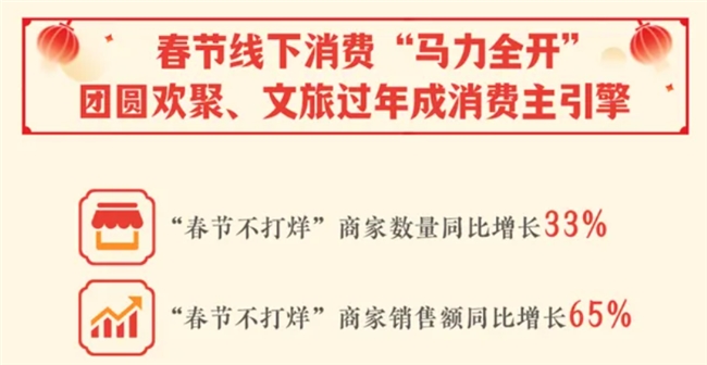 也正是看到了这份确定性,越来越多商家选择春节期间不打烊,数量同比增长33%,销售额同比增长65%。
