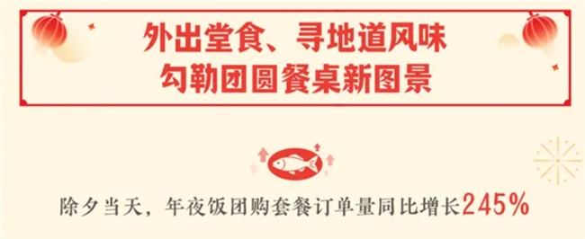 而整个春节期间,团圆饭团购套餐的订单量也同比增长了216%。