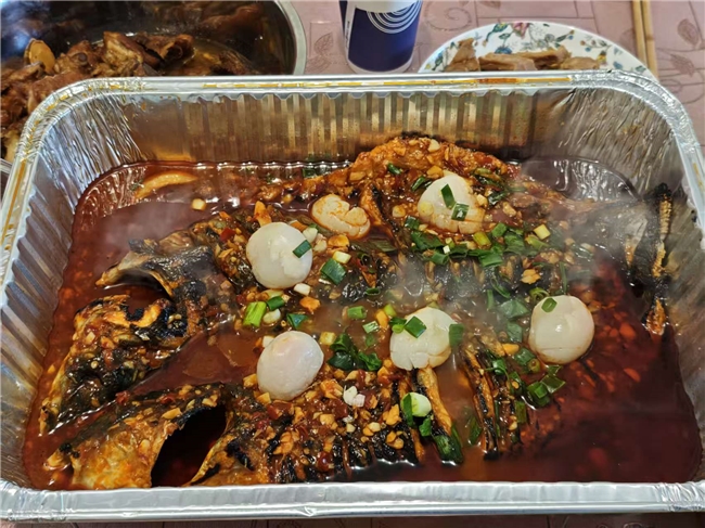 然后,我就刷到了本地一家连锁烤鱼店年夜饭团购套餐的广告,最后,它就端上了我家的餐桌。