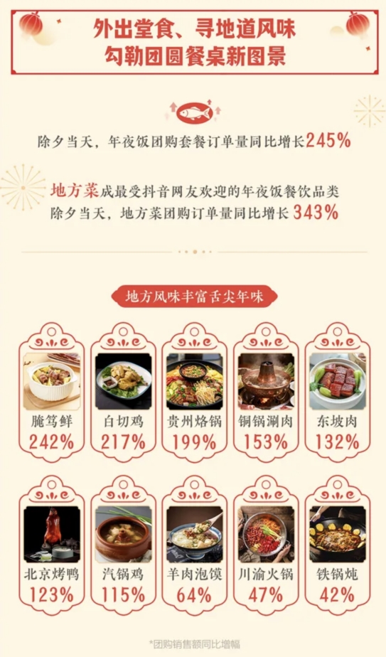你看,除夕当天,地方菜成了年夜饭的绝对主角,团购订单量直接翻了2.45倍。为什么?因为大家不想再吃那种千篇一律的预制菜大席了,就想吃点地道的、有锅气儿的家乡味。