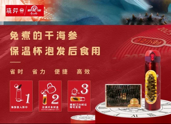 作为“中国12小时干海参开创者”,这款创新产品核心是兼顾“干参品质”与“便捷食用”。相较于传统干海参48小时以上的泡发时长,晓芹12小时干海参经工艺优化,保温杯加热水静置12小时即可泡发,泡发效率大幅提升,有效简化传统繁琐泡发模式。